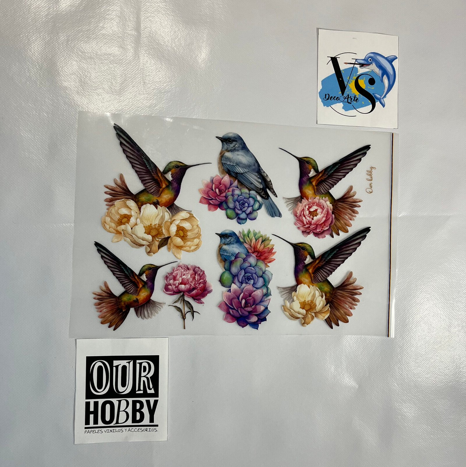Dale un toque vintage y artístico a tus proyectos con este transfer de pajaros adornadas con flores. Ideal para decorar tela, madera y más. Fácil de aplicar y con un acabado único. ¡Transforma tus creaciones con estilo!